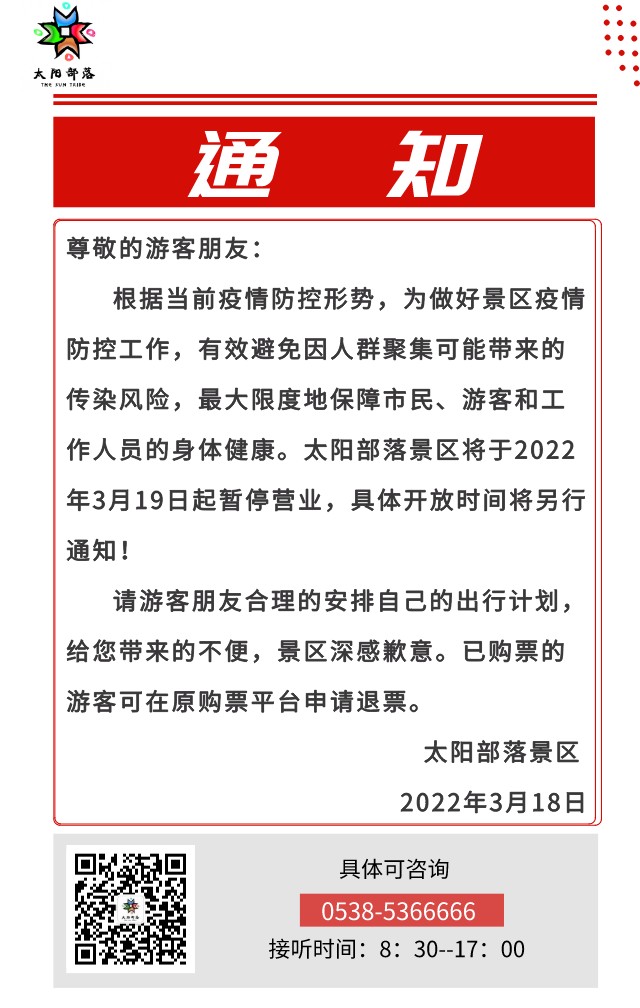 關(guān)于泰安太陽(yáng)部落景區(qū)的暫時(shí)閉園通知